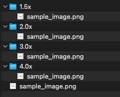 1.0x 이미지는 그냥 넣고 다른 해상도의 이미지는 각각 배율에 맞게 폴더를 만들어서 넣으면 알아서 그에 맞는 이미지를 가져온다.