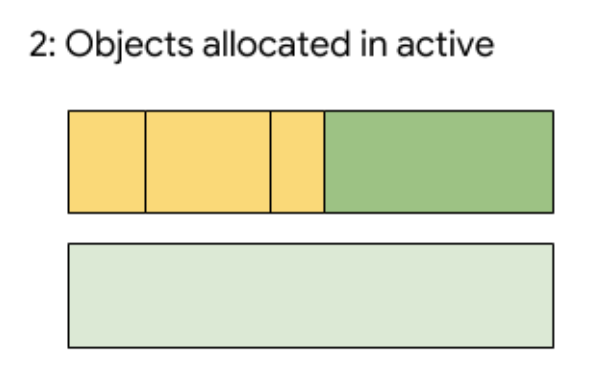 새로운 객체들은 활성화된 반쪽에 할당되며,