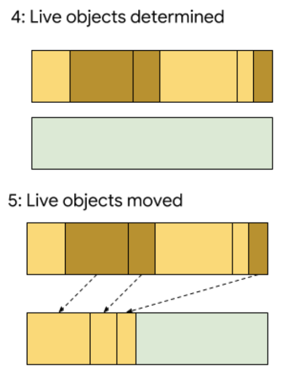 이 작업은 더 많은 시간이 소요되기 때문에, Garbage Collector는 앱이 사용자와 상호작용하지 않을 때 이 작업을 처리한다. 따라서 lock이 발생되지 않는다.