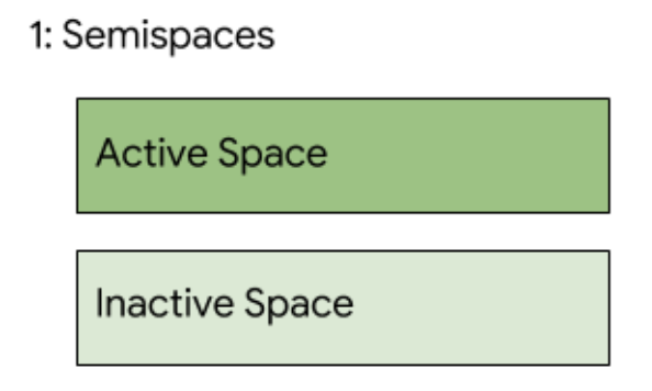 하나는 새로운 객체들이 계속해서 할당되는 활성화된 반쪽이고,