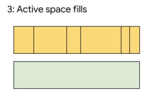 다 차면 기존 객체들을 다른 반쪽으로 옮기는 과정을 반복한다.